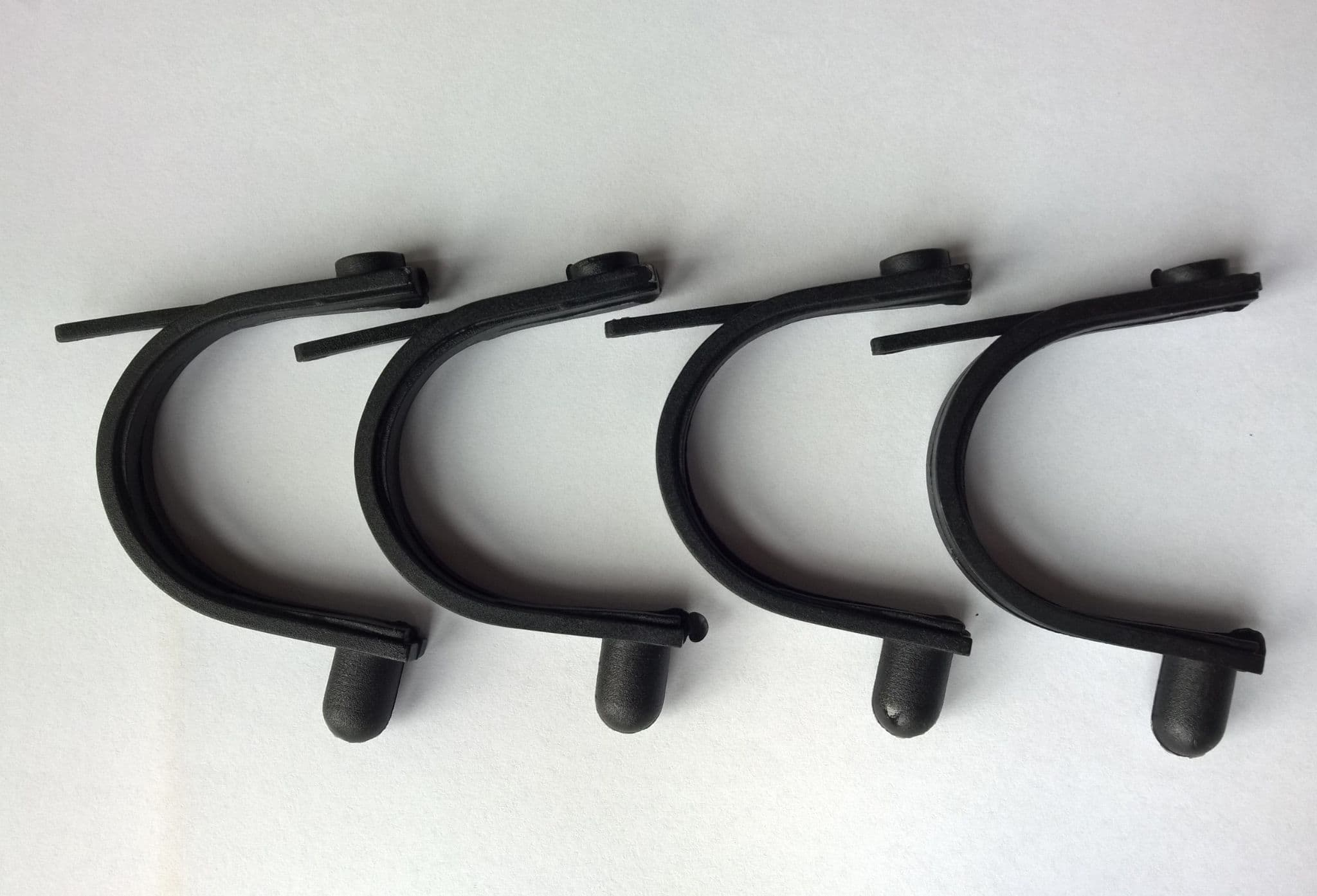 Quick release locking buttons used on the ITSA GOAL UPVC Pitch Barrier connecting T Bracket. The buttons are made from indestructible black industrial nylon to give a strong tension to hold mouldings in place. this item is sold as a set of four buttons.
